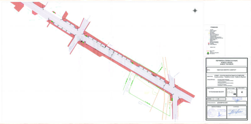 • νέα χάραξη οριογραμμών των οδικών αξόνων και θέσεις στάθμευσης